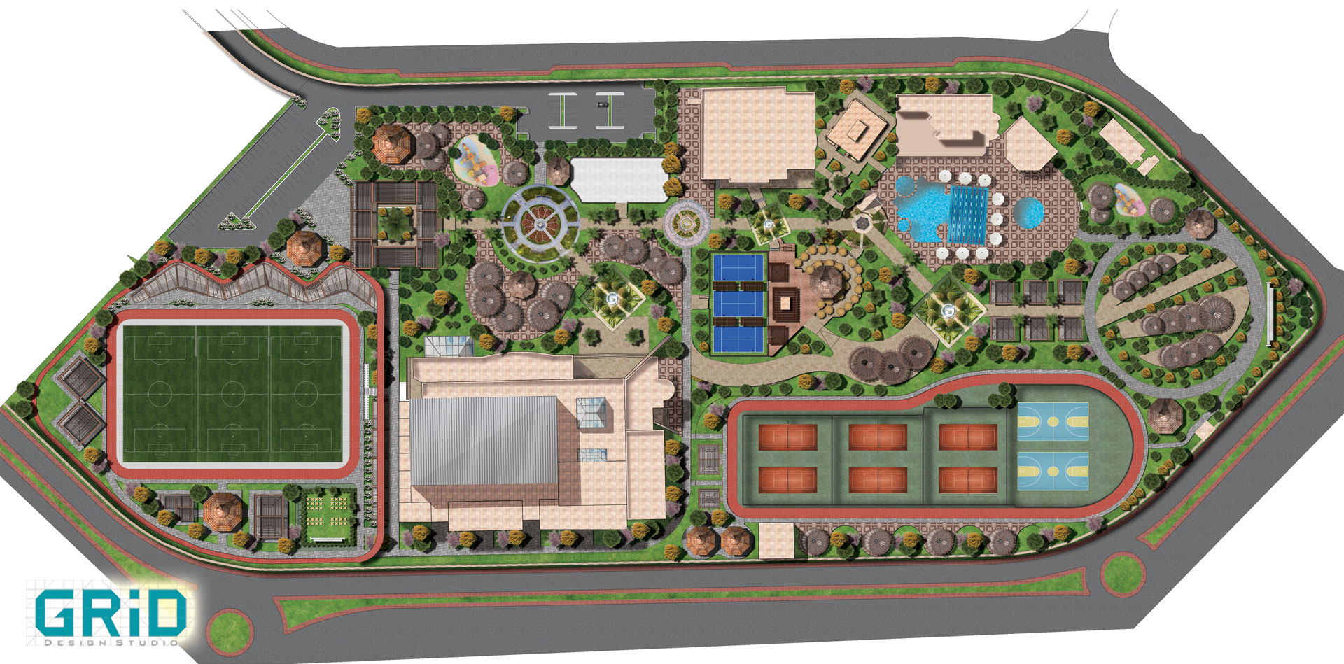 GYM, Pro shop, Food court, 4 Squash courts, Changing room, Cafeteria & lounges, and Semi Olympic indoor pool.
