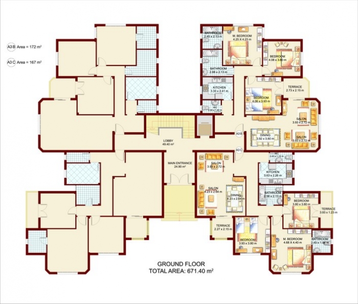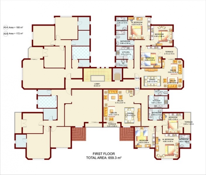 The Apartment Building Zone Contains 12 Buildings With 184 Apartments Of Areas Various From 165 M2 Up To 200 M2. The Town / Twin Houses Zone Encompasses 86 Units (52 Town Houses And 34 Twin Houses) With Areas Range From 264 M2 Up To 362 M2.